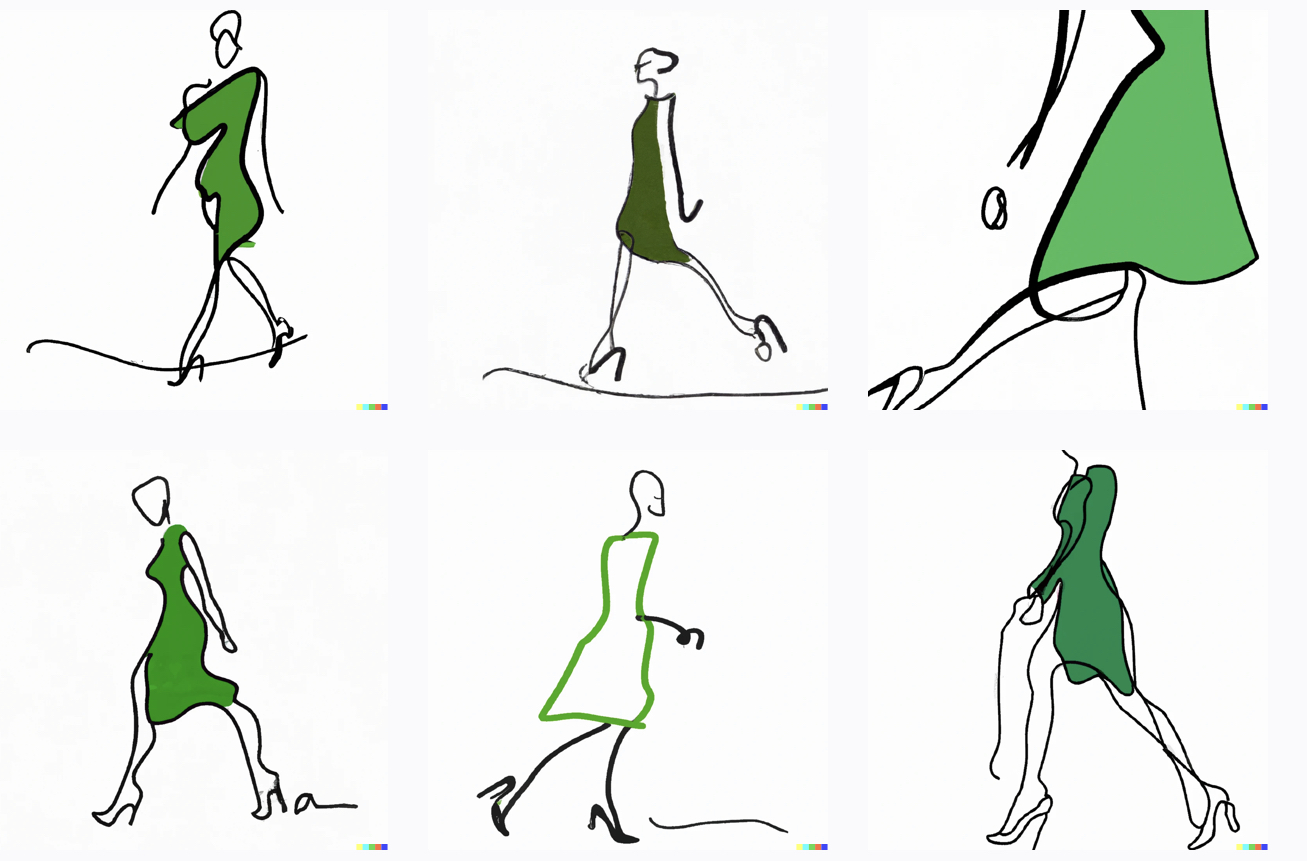 "검정 드레스를 입고 초록색 구두를 신고있는 단발머리의 여자" 그림도 생성해봤다.
